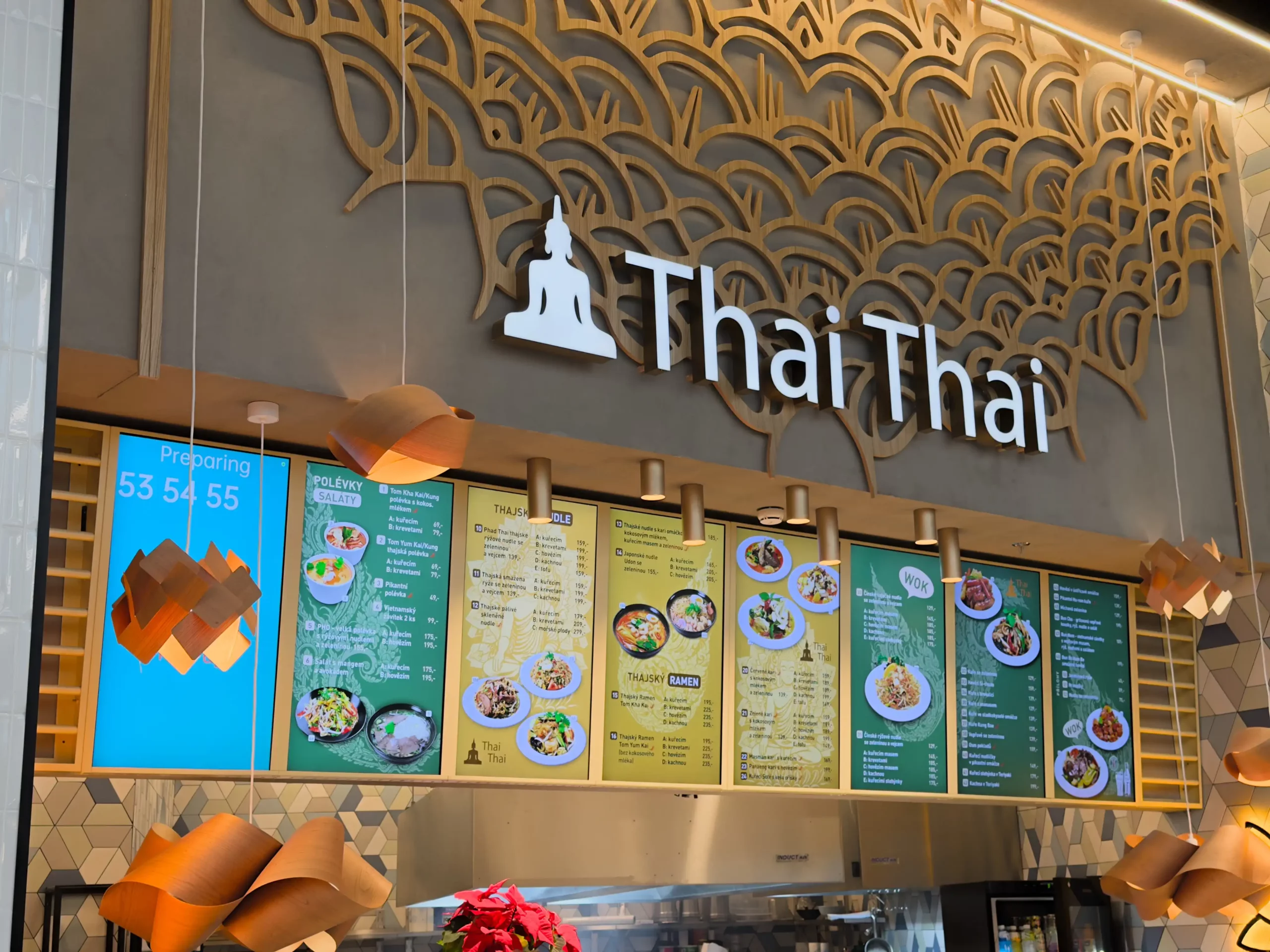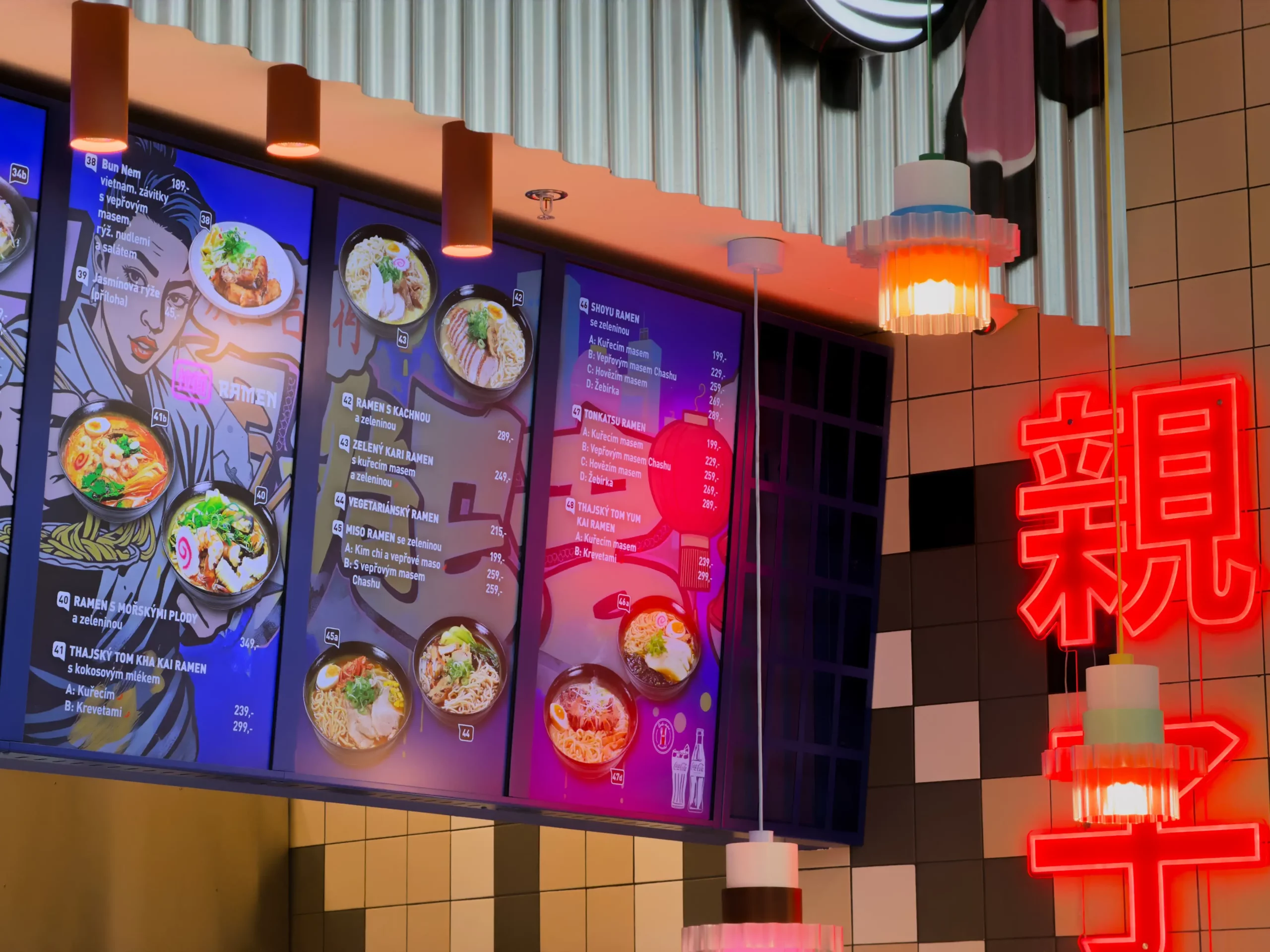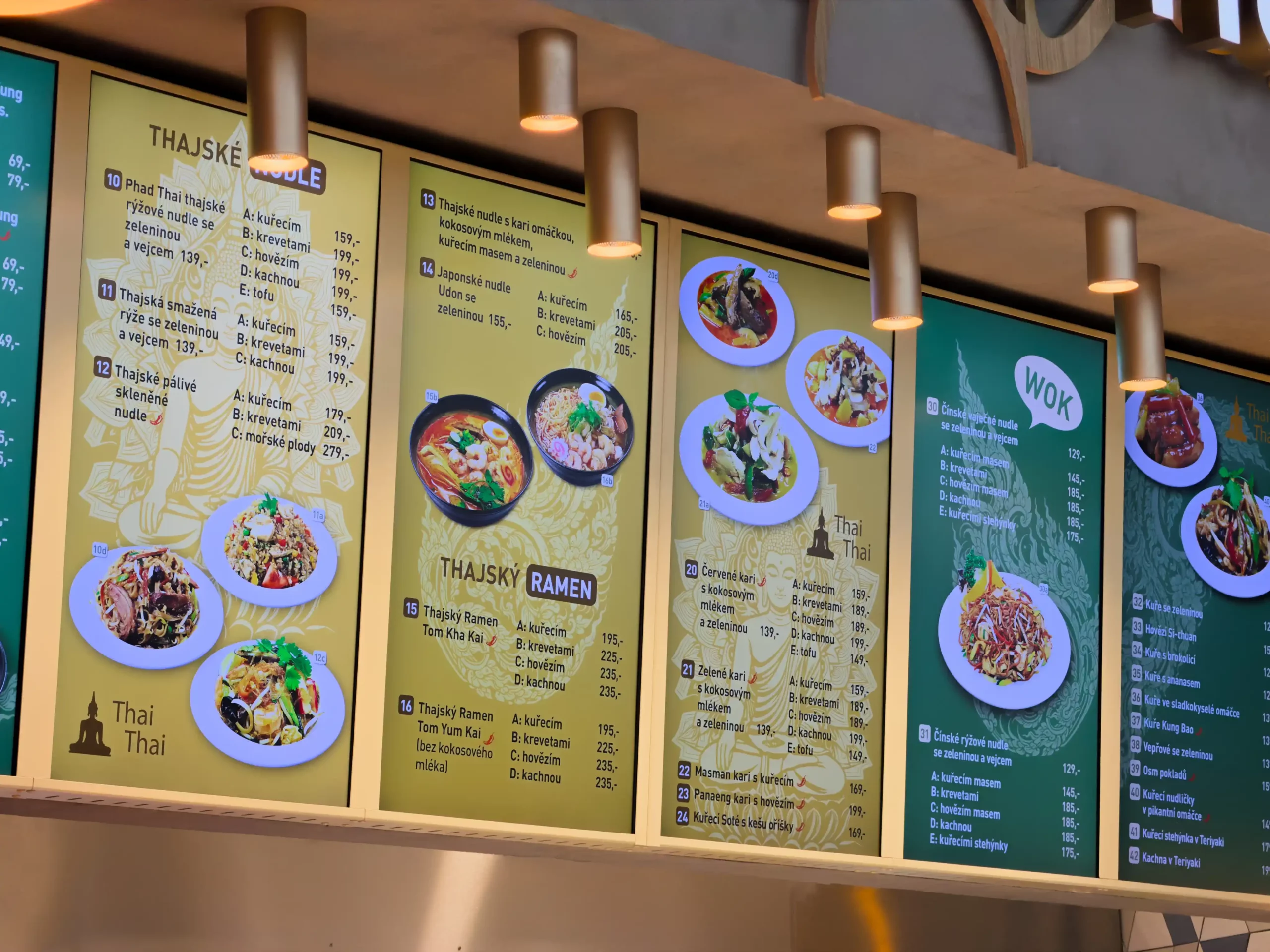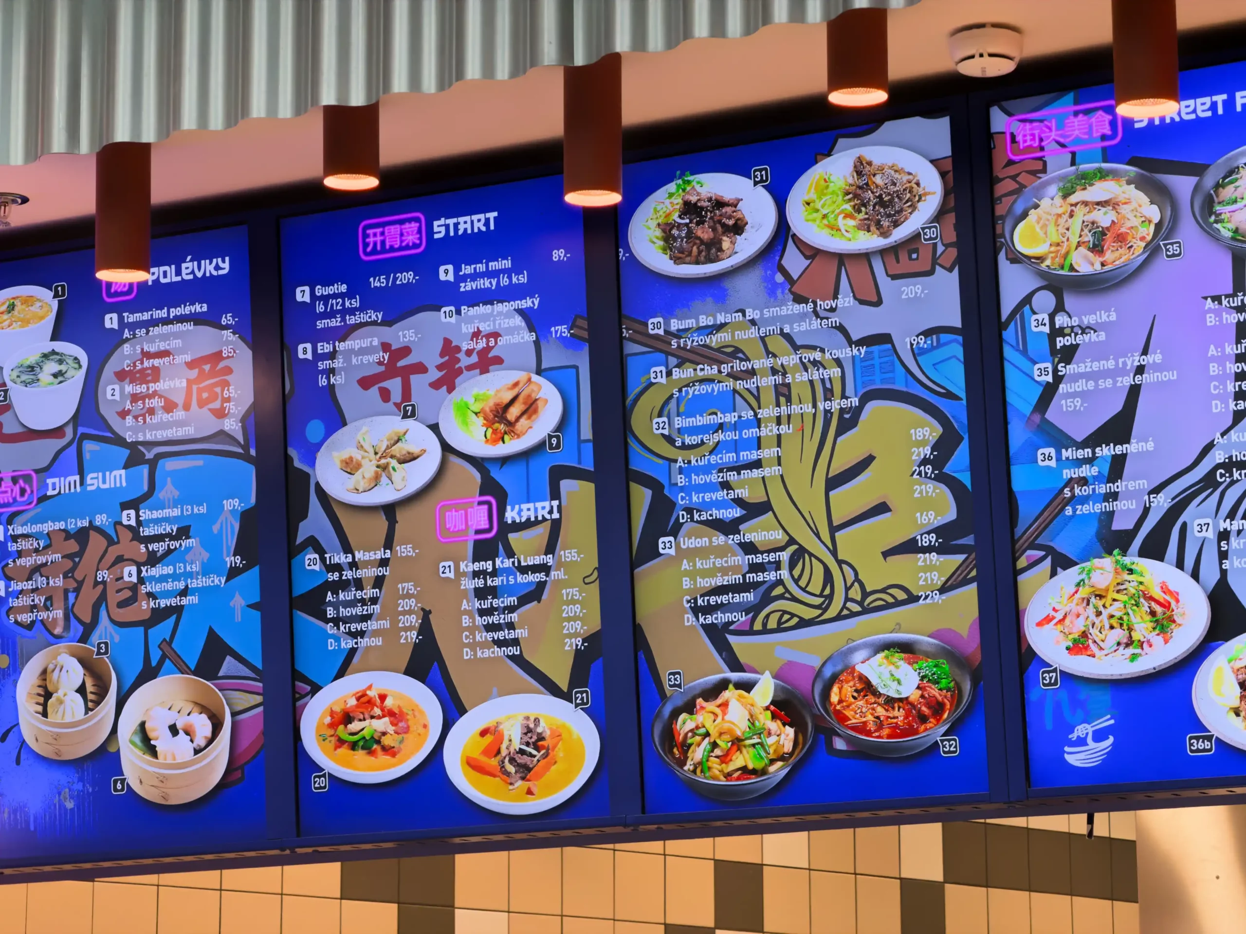 These menu boards represent a unique combination of our original design with professional displays. We created custom metal support frames specifically for this store, which perfectly complement the overall interior aesthetic.